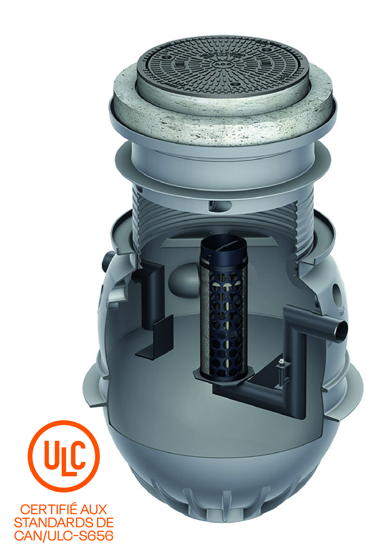 Les séparateurs d’huile ACO sont muni d’une flotte qui empêche les trop-pleins d’huile de se retrouver aux égouts. Cette flotte situé à la surface de l’eau, va descendre à mesure que l’huile s’accumule dans le séparateur. Si le séparateur atteint son plein potentiel de captation d’huile, la flotte bouchera la sortie pour empêcher l’huile de passer.